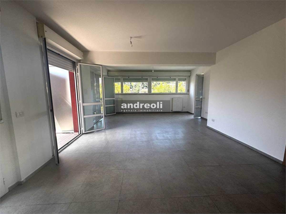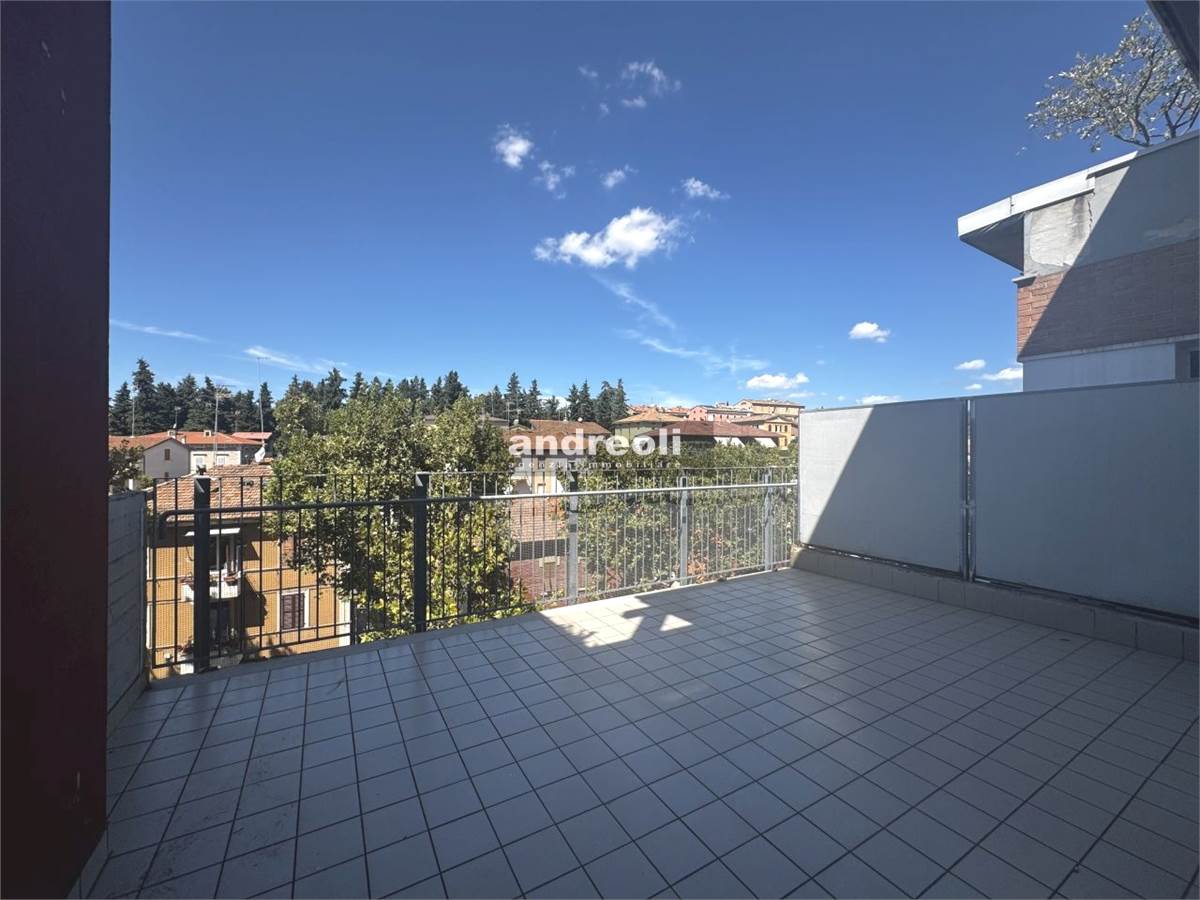 Jesi - Situato in zona centro, in posizione ottimamente collegata, affittiamo a sole persone referenziate, questo moderno appartamento di 84 mq si trova al quarto e ultimo piano di un edificio servito da ascensore ed è dotato di balcone, terrazza e posto auto privato.
