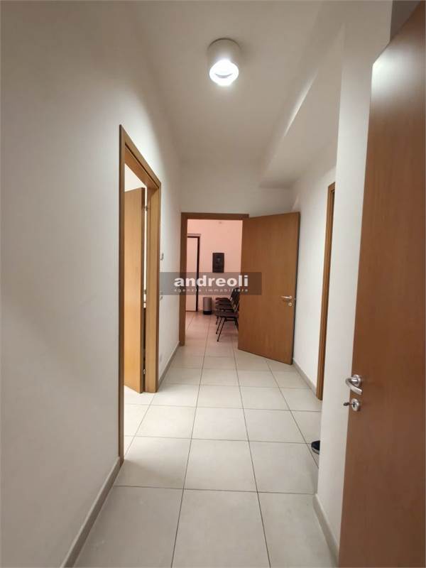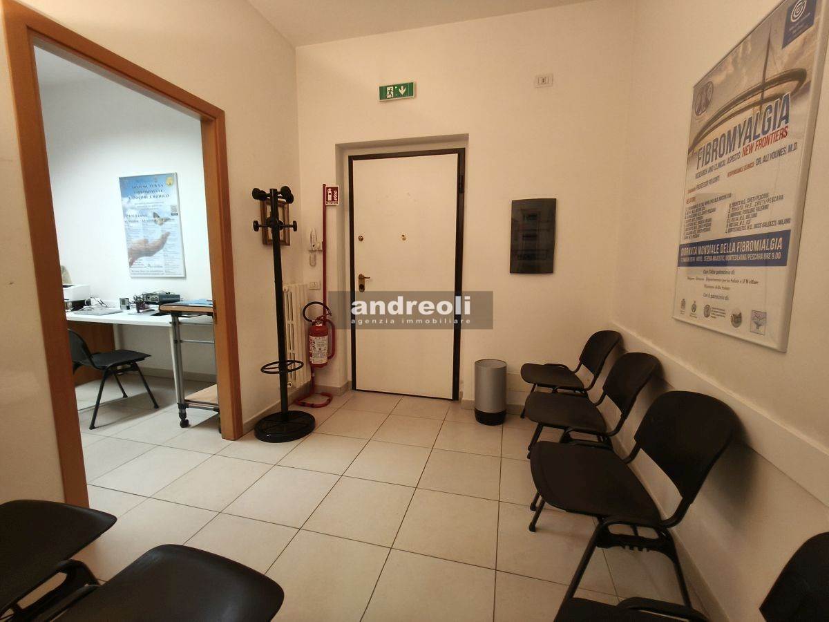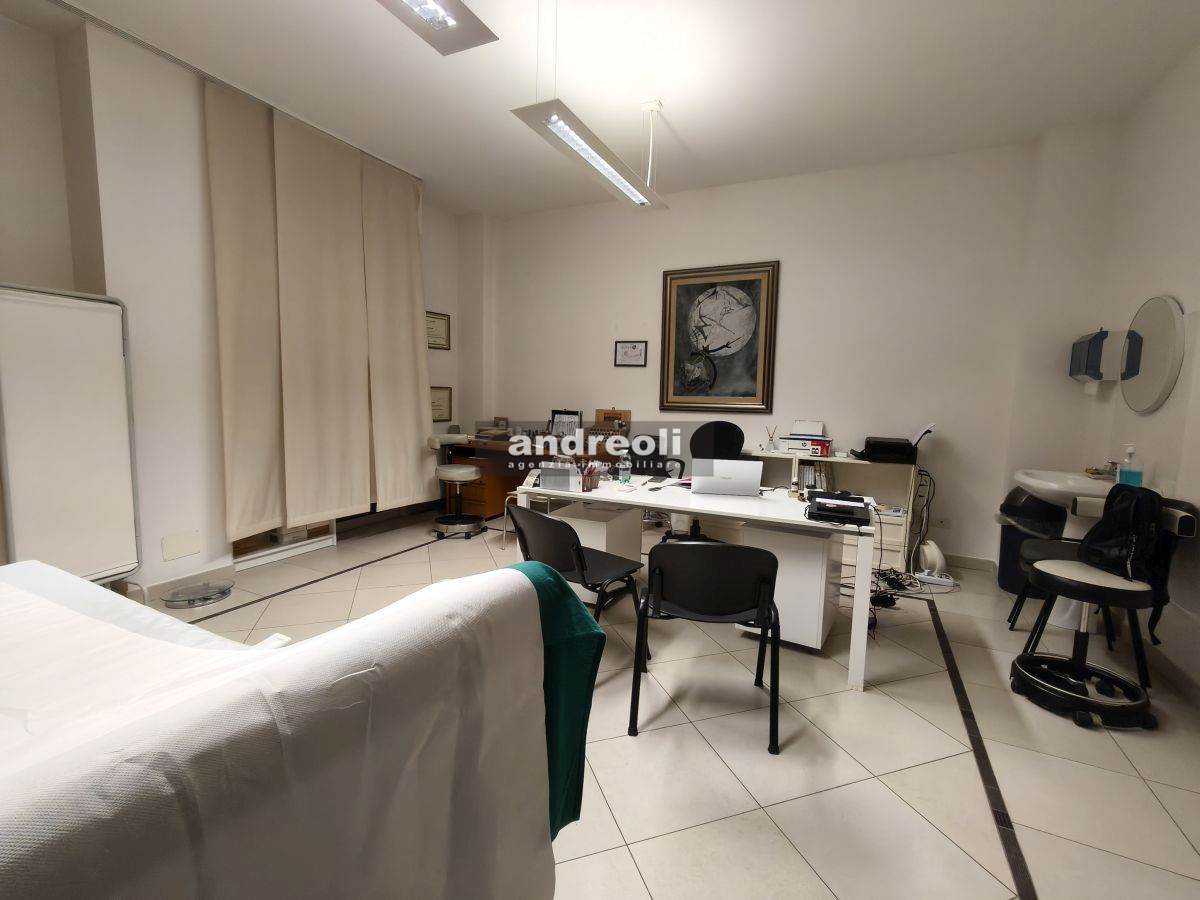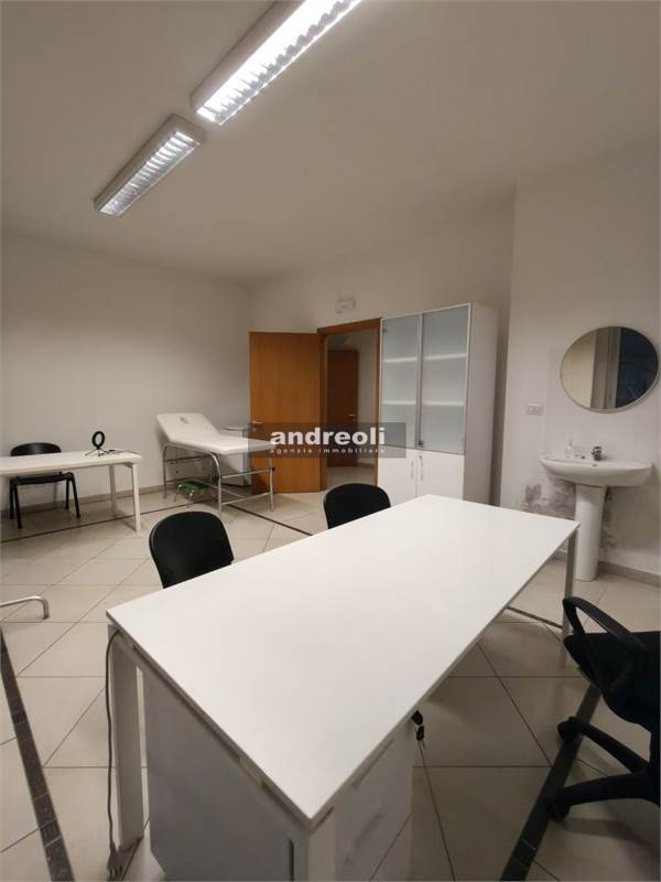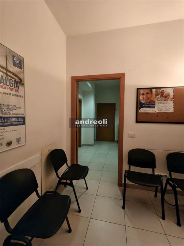 L'immobile è collocato al primo dei tre piani di un edificio servito da ascensore e ha una superficie complessiva di 100 mq. La dislocazione interna dell'ufficio è la seguente: l'ingresso si apre su una sala d'attesa (attualmente è adibito a studio medico), seguita da tre ampie stanze lavoro e da un bagno. Ben rifinito, il locale presenta anche ottimi dettagli interni, tra cui infissi con doppi vetri e aria condizionata.