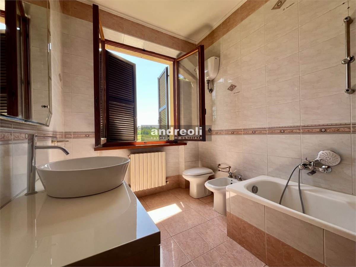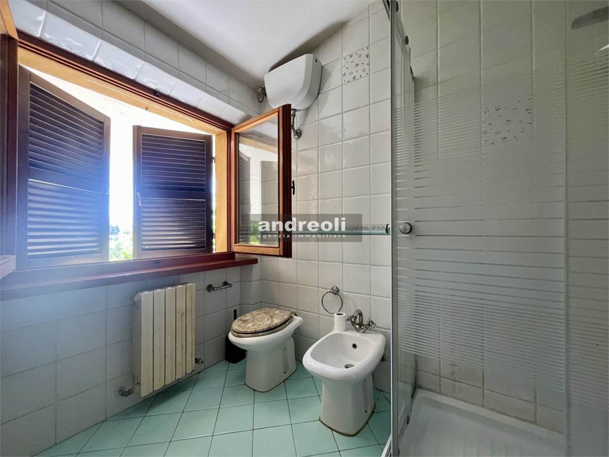 L'appartamento al piano terra ha una superficie di 118 mq ed è composto da un soggiorno, una cucina abitabile, tre camere da letto e doppi servizi igienici.