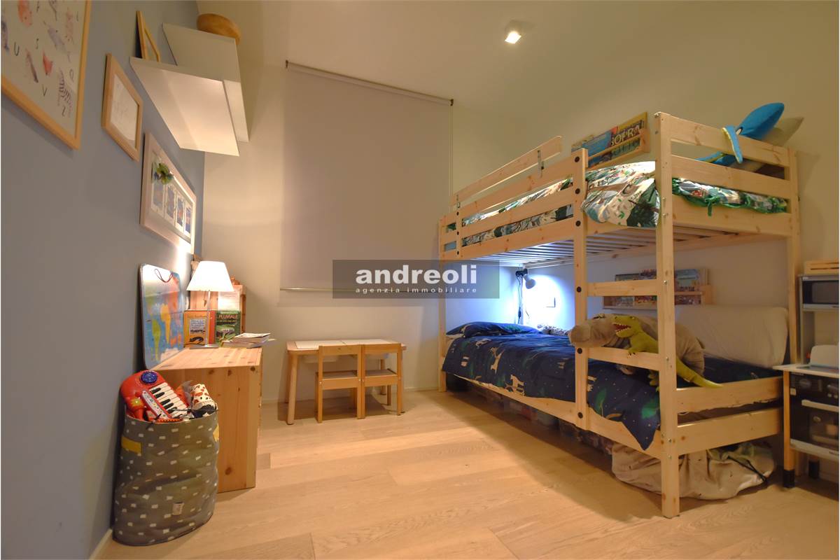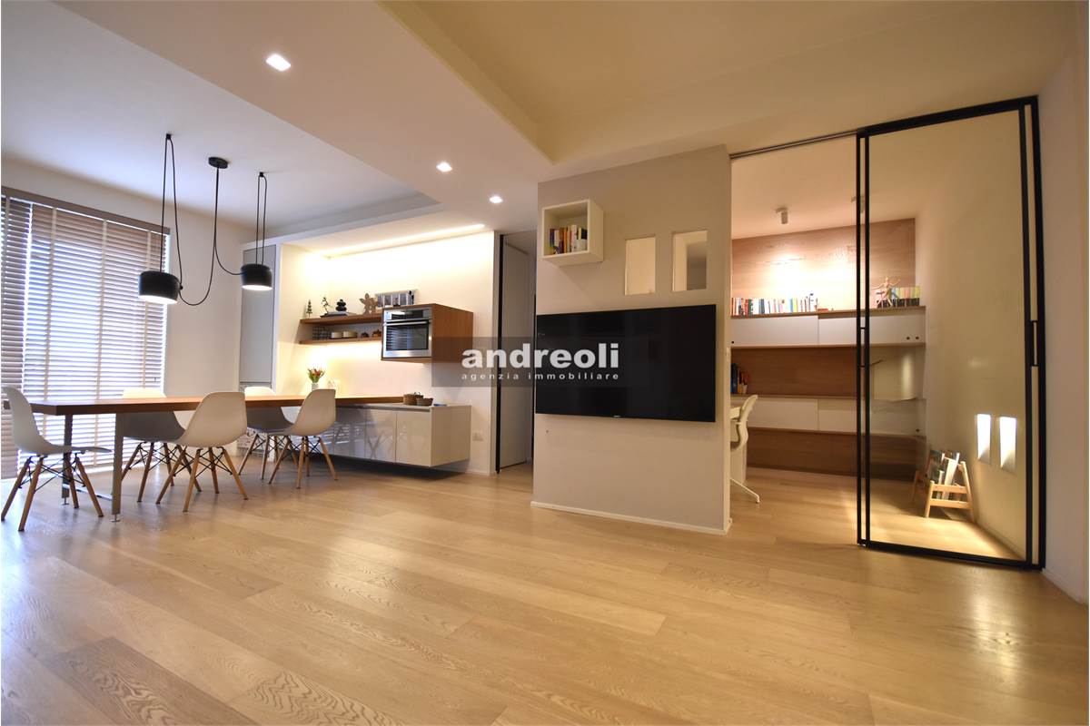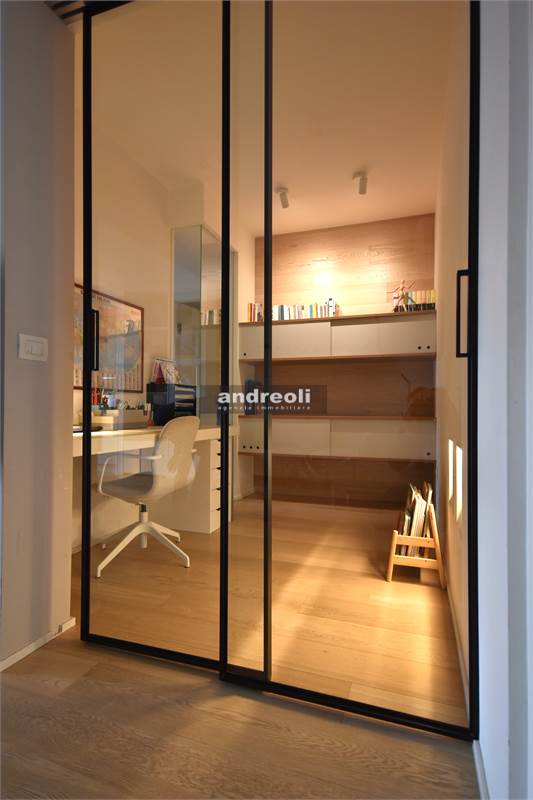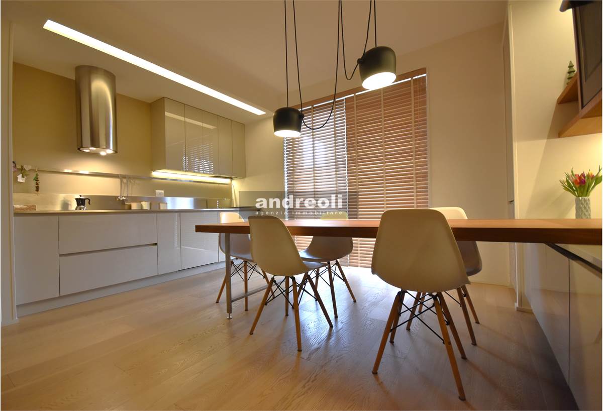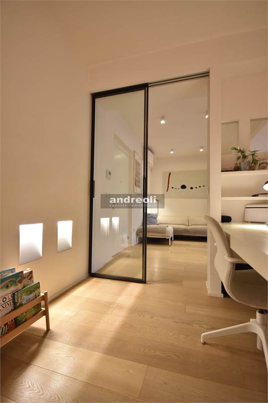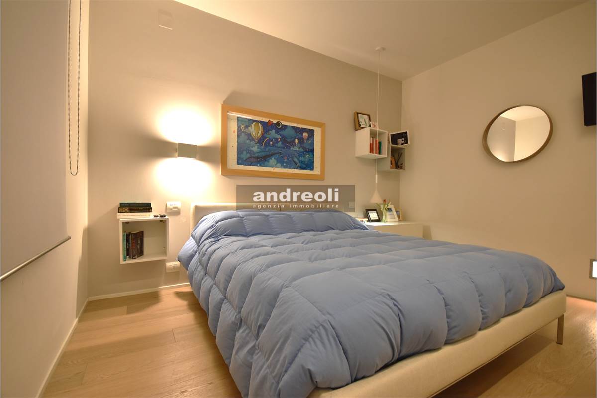 Dotato di ogni plus desiderabile, l'immobile si caratterizza in primis per la bellezza e la qualità delle rifiniture e, soprattutto, degli arredi, la totalità dei quali è inclusa nel prezzo di vendita. Quest'ultimo aspetto rappresenta un grande punto di forza della proprietà, dal momento che nell'arredamento della casa troviamo grandi marchi di design (dalla cucina MK by Foster ai divani e letti Cassina fino a Flos e Foscarini per l'illuminazione) e pezzi unici realizzati su misura (come le scaffalature e gli armadi a muro del living e dello studio, prodotti da una falegnameria artigianale).