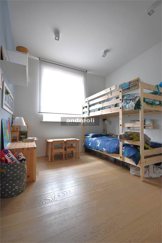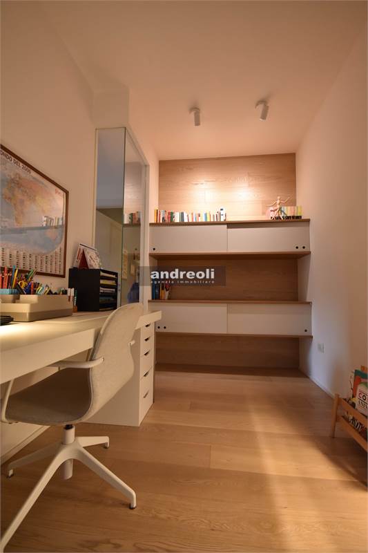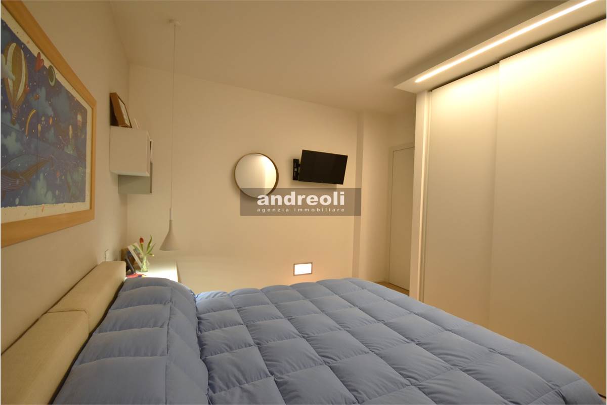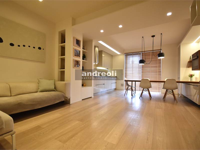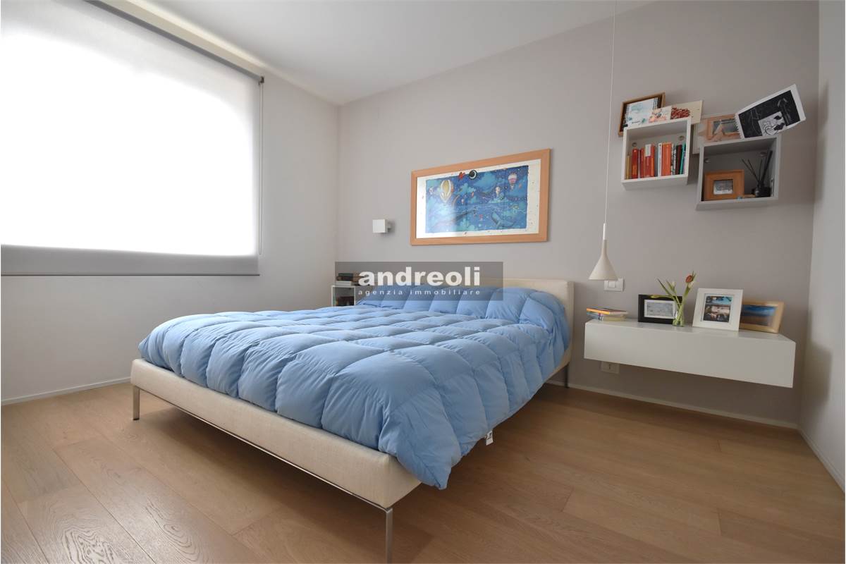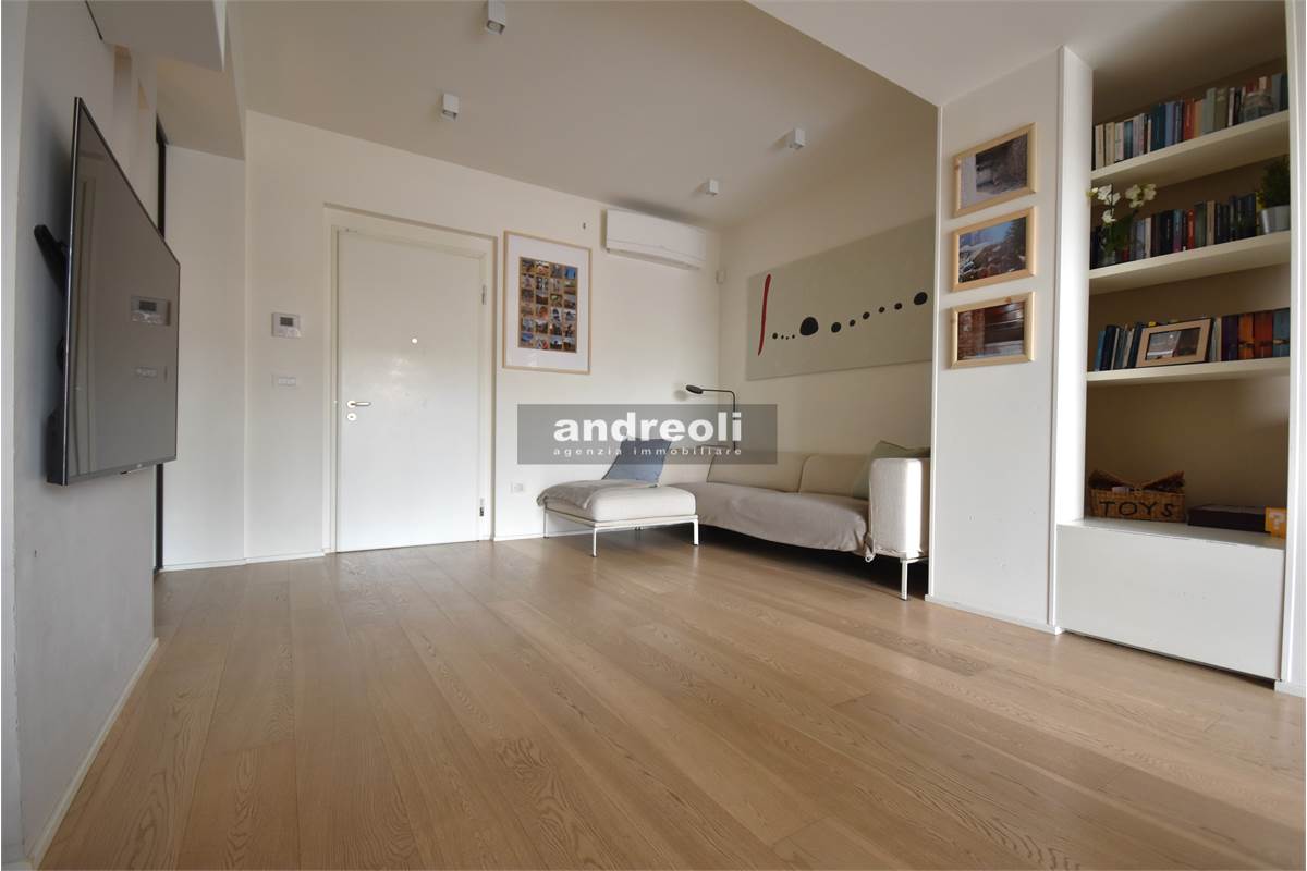 Dotato di ogni plus desiderabile, l'immobile si caratterizza in primis per la bellezza e la qualità delle rifiniture e, soprattutto, degli arredi, la totalità dei quali è inclusa nel prezzo di vendita. Quest'ultimo aspetto rappresenta un grande punto di forza della proprietà, dal momento che nell'arredamento della casa troviamo grandi marchi di design (dalla cucina MK by Foster ai divani e letti Cassina fino a Flos e Foscarini per l'illuminazione) e pezzi unici realizzati su misura (come le scaffalature e gli armadi a muro del living e dello studio, prodotti da una falegnameria artigianale).
