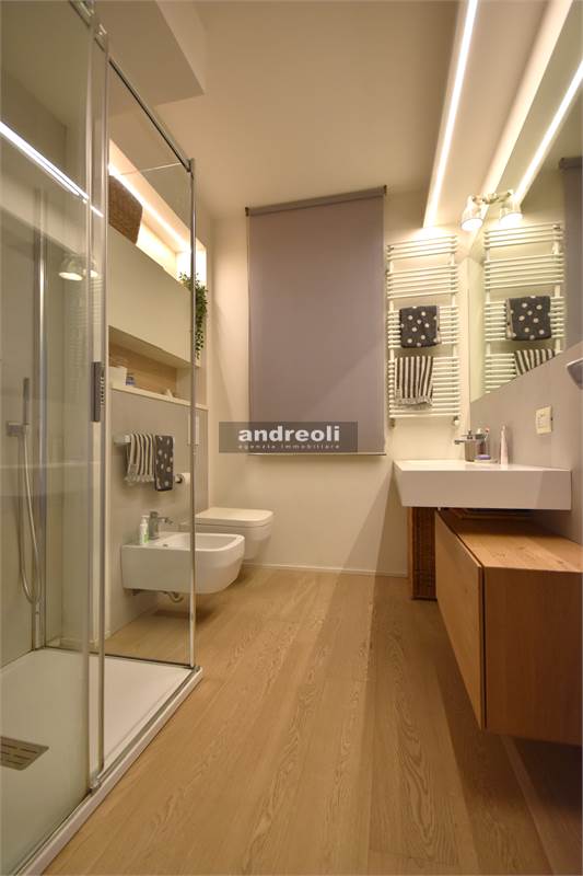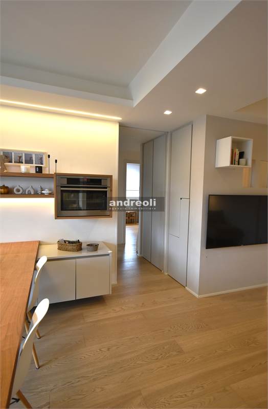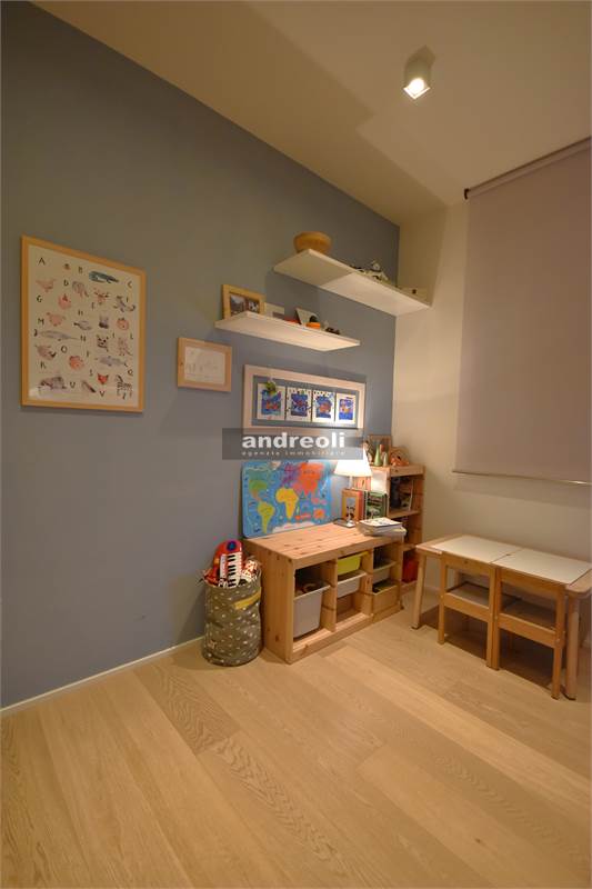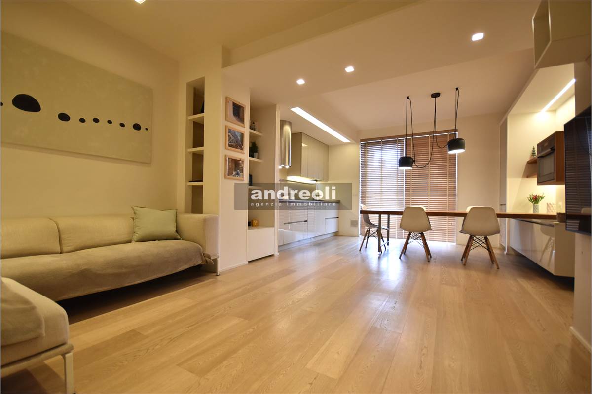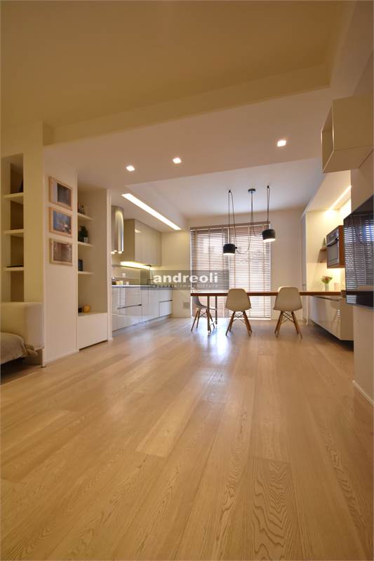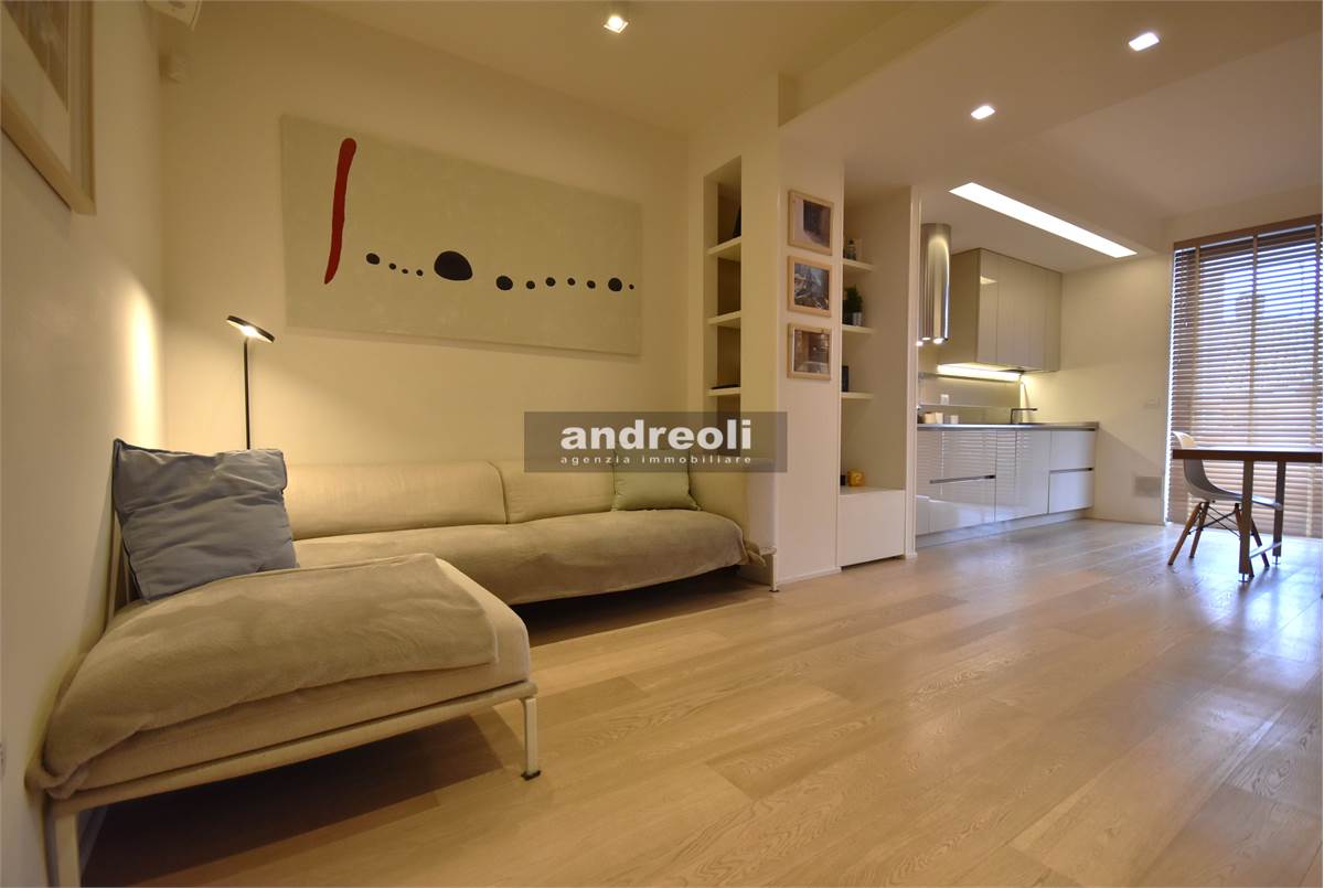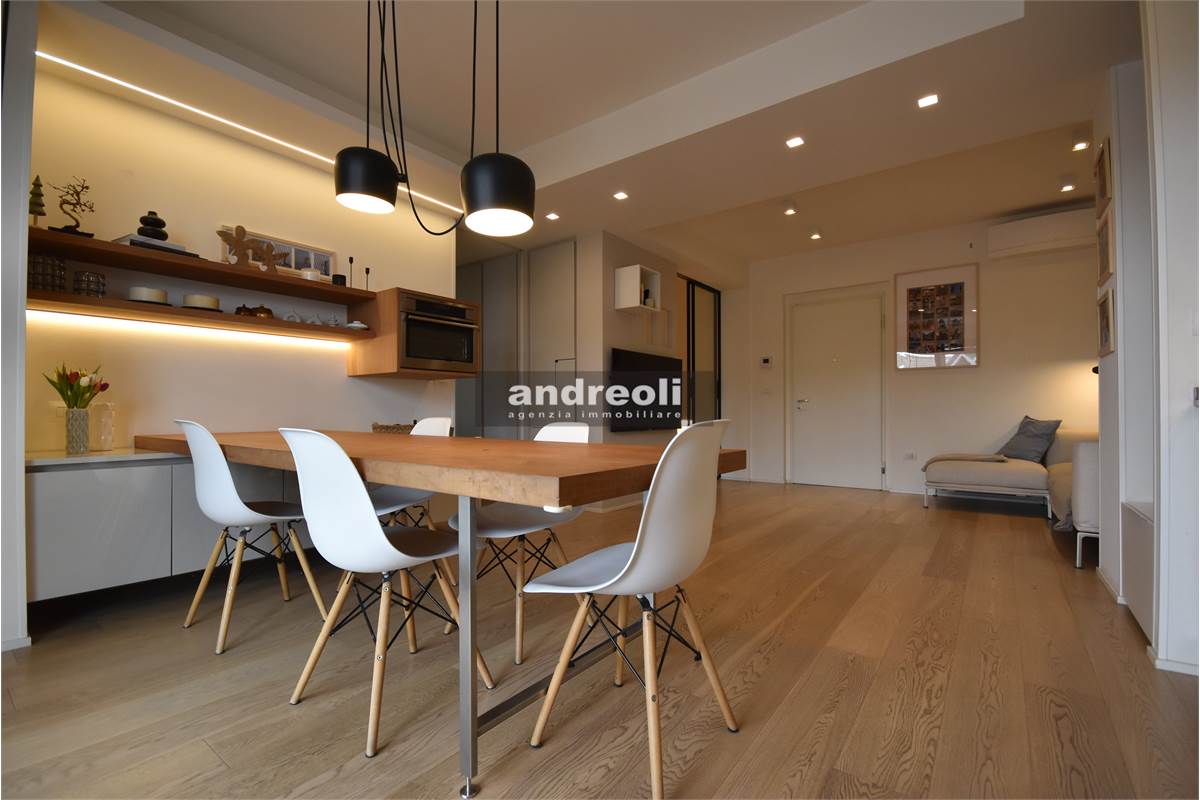 Dotato di ogni plus desiderabile, l'immobile si caratterizza in primis per la bellezza e la qualità delle rifiniture e, soprattutto, degli arredi, la totalità dei quali è inclusa nel prezzo di vendita. Quest'ultimo aspetto rappresenta un grande punto di forza della proprietà, dal momento che nell'arredamento della casa troviamo grandi marchi di design (dalla cucina MK by Foster ai divani e letti Cassina fino a Flos e Foscarini per l'illuminazione) e pezzi unici realizzati su misura (come le scaffalature e gli armadi a muro del living e dello studio, prodotti da una falegnameria artigianale).