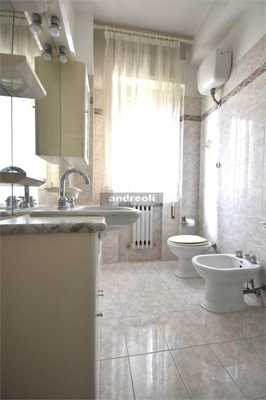 L'immobile si trova al primo dei tre piani di un piccolo condominio con ascensore e internamente presenta la seguente dislocazione: ingresso, sala servita da balcone, cucina abitabile composta da un cucinino (dotato di ripostiglio e attacchi per la lavatrice) e da un tinello con balcone (munito di tende da sole), due camere matrimoniali e bagno finestrato con doccia e attacchi per la lavatrice.