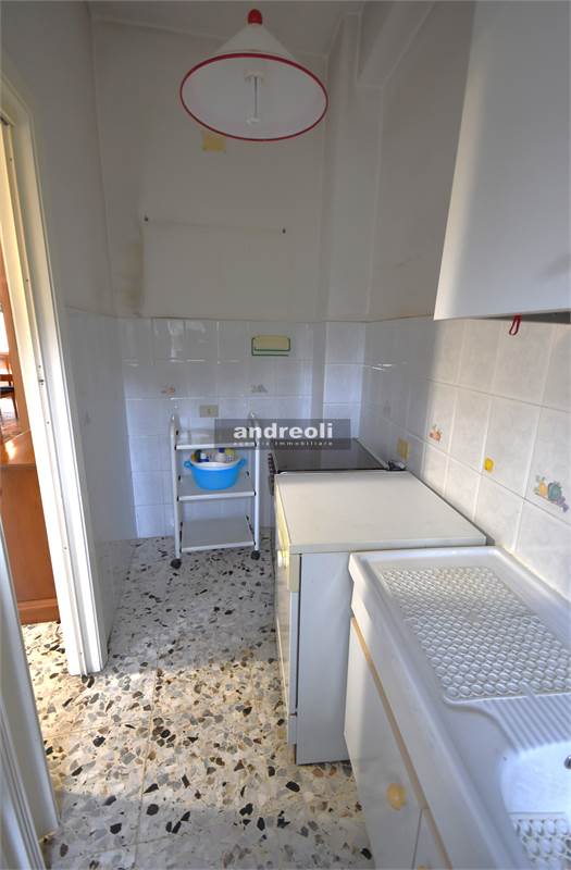 Oltre all'ingresso, entrando nell'abitazione troviamo anzitutto un salone con accesso al primo dei balconi di cui dispone la casa, seguito da una cucina abitabile composta da cucinino e tinello e dotata anch'essa di balcone (con tenda da sole e zanzariera).