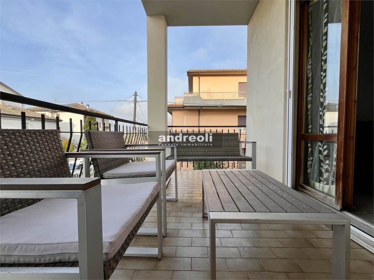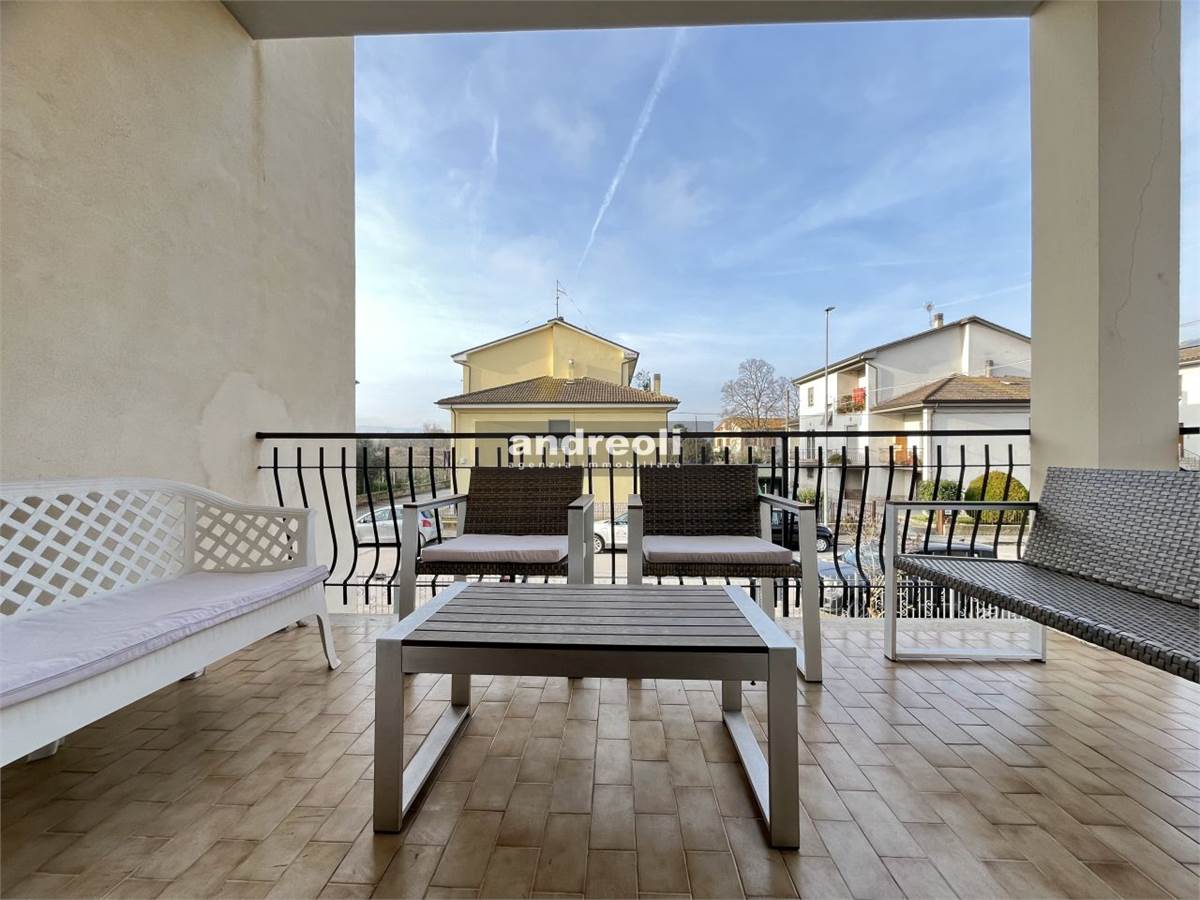 Jesi - Dotato di importanti plus quali balcone, terrazzo e garage, questo luminoso appartamento di 125 mq si trova al primo piano di una palazzina in zona Piandelmedico.