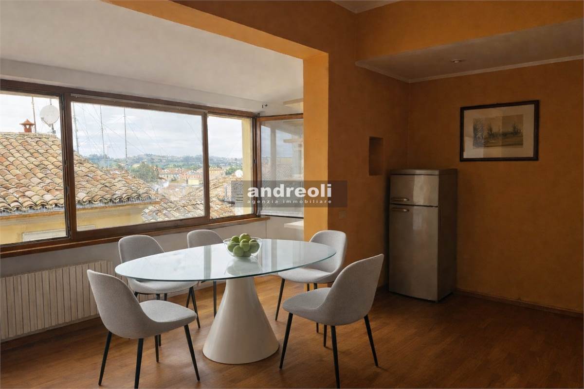 Oltre all’ingresso, entrandovi troviamo un soggiorno molto luminoso - dove una grande finestratura offre una vista suggestiva sui tetti del centro storico - e un angolo cucina, una camera matrimoniale con doppia finestra e un bagno finestrato dotato di vasca. Vi è anche la possibilità di ricavare una seconda camera da letto.