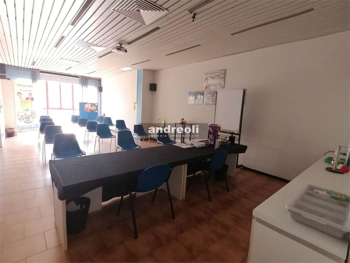 Jesi - In zona Viale Don Minzoni proponiamo in vendita ufficio di 125 mq ca situato al primo piano. Il locale si trova all'interno di una palazzina non servita da ascensore e al suo interno è composto da: ingresso, ampia sala riunioni/corsi, due uffici, zona ripostiglio e bagno. Alcuni dettagli: pavimenti in ceramica, infissi in metallo con doppi vetri, aria condizionata, porta blindata. Classe energetica in fase di valutazione. Cod. 65710. Disponibile dal 01/05/2026.