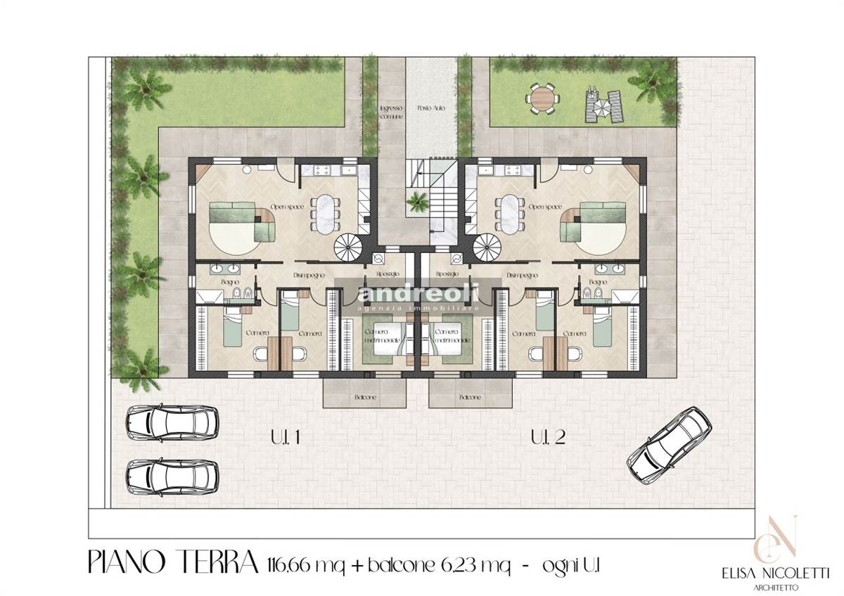 L'abitazione è parte di una quadrifamiliare di nuova realizzazione che verrà completata nel 2028 e che prevede la costruzione di quattro appartamenti su due piani, dotati tutti di ingresso indipendente e di importanti accessori, nonché concepiti secondo i più moderni canoni estetici e tecnologici.